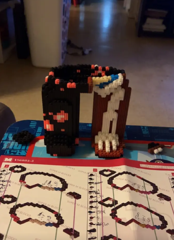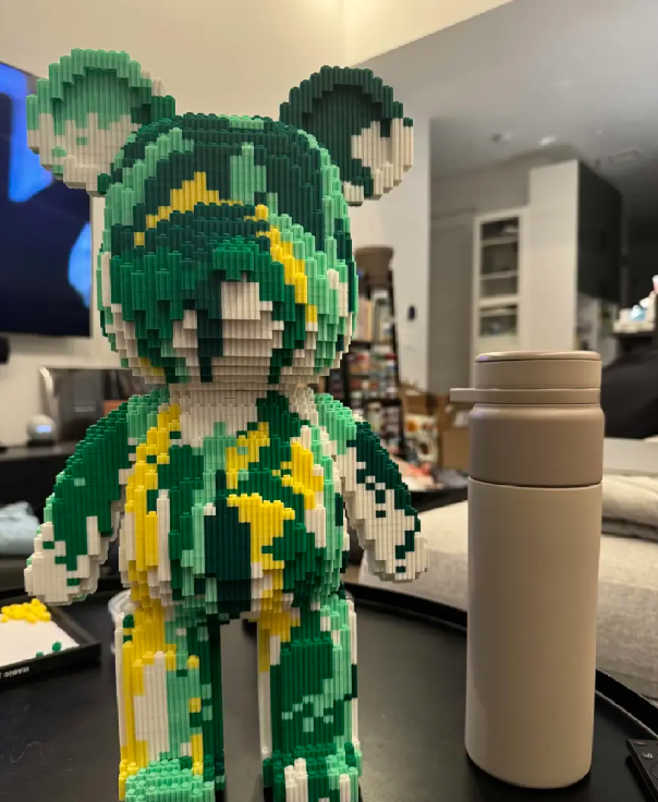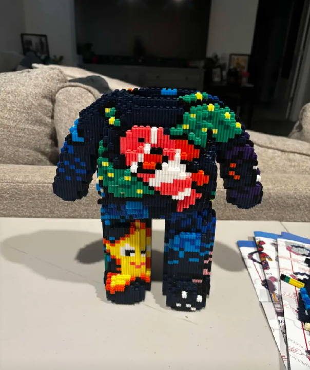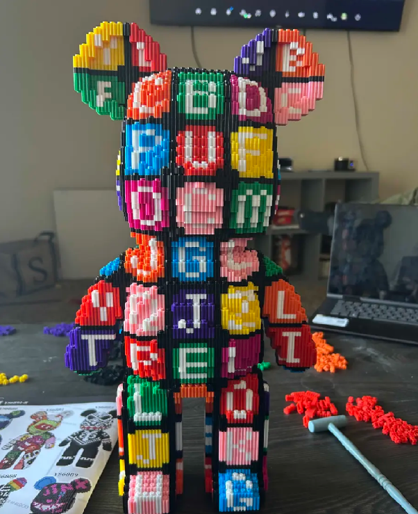 Une fois assemblé correctement, l’ours est assez robuste grâce aux briques imbriquées de qualité, parfaites pour l’exposition.